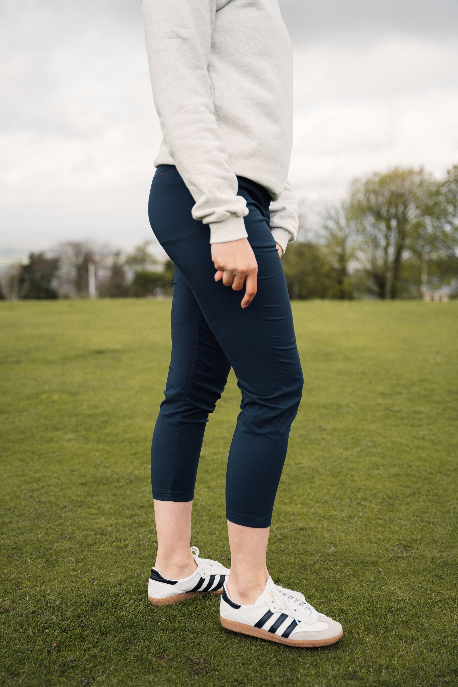 Enjoy the perfect blend of style and sustainability with the Women’s Cut-off Trouser, made from recycled polyester. This cut off trouser has a classic look but a casual feel. Wear with a polo on competition day and an oversized sweatshirt on a summer evening. With contrast stitching for a pop and of course, our signature brand patch on the waist band.